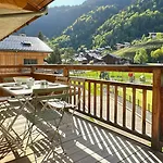 Situata a una distanza di 6 km dall'Epicea Ski Lift, la villa Sources, Terrasse et confort 4 étoiles La Plagne, dispone di una terrazza con vista sulle montagne.
